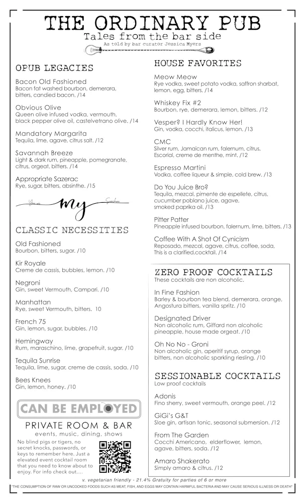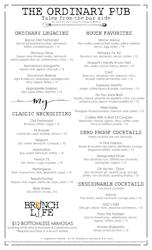 Bacon fat washed bourbon / demerara / Angostura bitters / candied bacon.